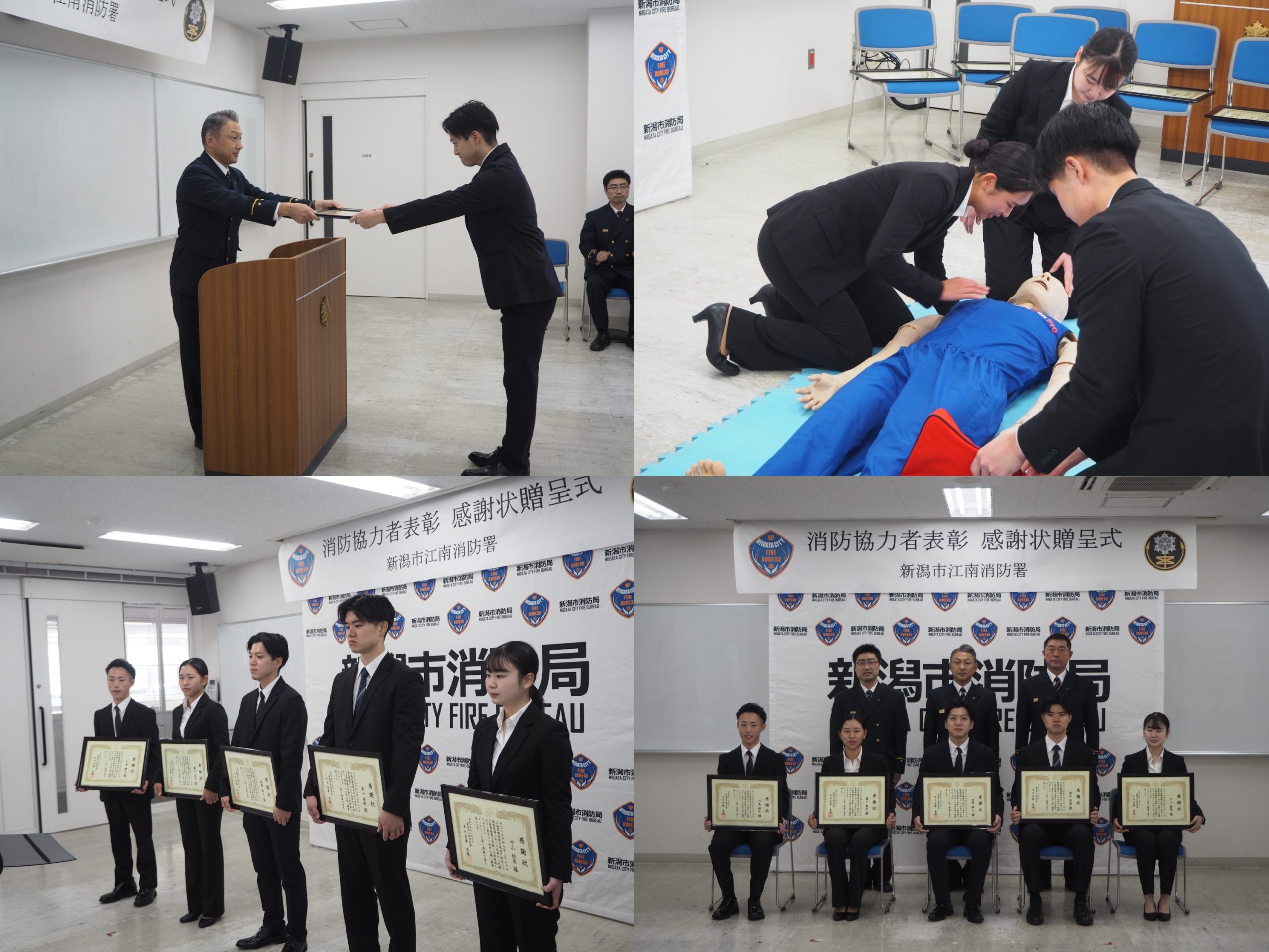 人命救助に貢献したとして、本日5名の学生に新潟市江南消防署より感謝状が贈呈されました。